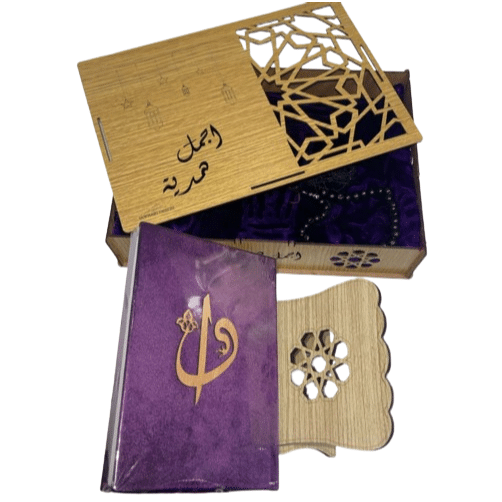 Un coffret cadeau contenant un **Coran**,et Porte Coran en un **tapis de prière** et un **tasbih** est un cadeau spirituel idéal pour le Ramadan. Le **Quran** est le livre sacré de l’Islam, le **tapis de prière** offre un espace confortable pour les prières quotidiennes, et le **tasbih** (chapelet) est utilisé pour les invocations et les prières. Ce coffret combine des éléments essentiels à la pratique religieuse, offrant à la fois confort et spiritualité, ce qui en fait un cadeau parfait pour ce mois béni.