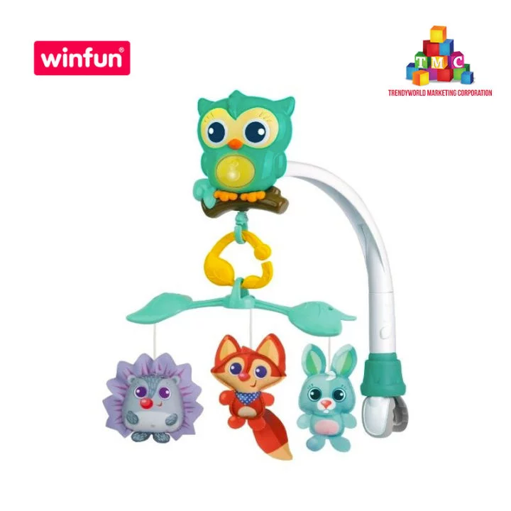– Mobile musical pour berceau avec jusqu’à 20 minutes de berceuses apaisantes et 3 adorables amis des bois