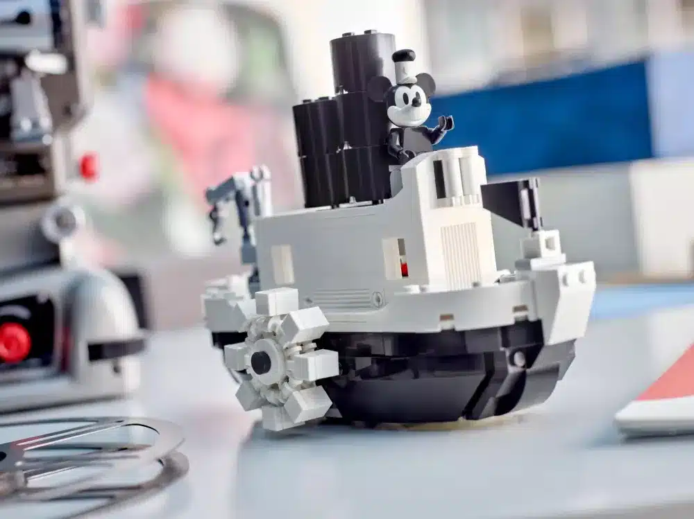 – Un modèle empreint de nostalgie – Ce set qui marque le 100e anniversaire de Disney présente un bateau noir et blanc à construire avec une roue à aubes rotative et des cheminées à vapeur mobiles, ainsi qu’une minifigurine qui stimule le jeu de rôle