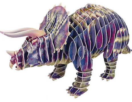 Assemble ton puzzle Triceratops en carton 3D ! 67 pièces numérotées.