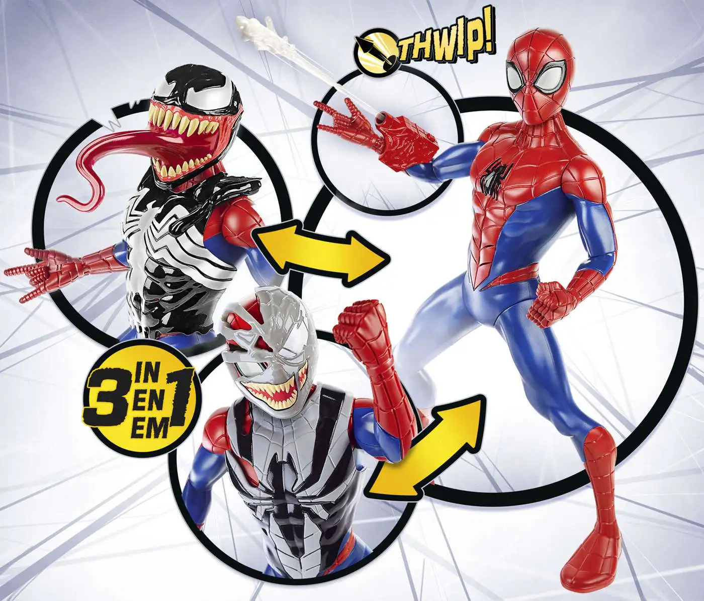 Peter Parker revêt son symbiote extraterrestre pour devenir Spider-Man Venomisé ou Spider-Man Symbiote ! Spider-Man est désormais Venomisé avec cette figurine inspirée de la série Spider-Man Maximum Venom ! Les enfants peuvent habiller cette figurine classique de Spider-Man avec une combinaison noire Venomisée ou une combinaison symbiote grise et noire pour une aventure extraterrestre. Trois versions différentes de votre Spider-Man de quartier préféré ! La figurine émet également des sons et prononce des phrases tirées de la série Disney XD. « Je dois enlever ce truc de Venom avant qu’il ne devienne trop puissant ! » Les enfants peuvent fixer le lance-toiles inclus au poignet de la figurine, charger un projectile (inclus) et le tirer pour imaginer des combats palpitants dans l’univers de Spider-Man Maximum Venom !