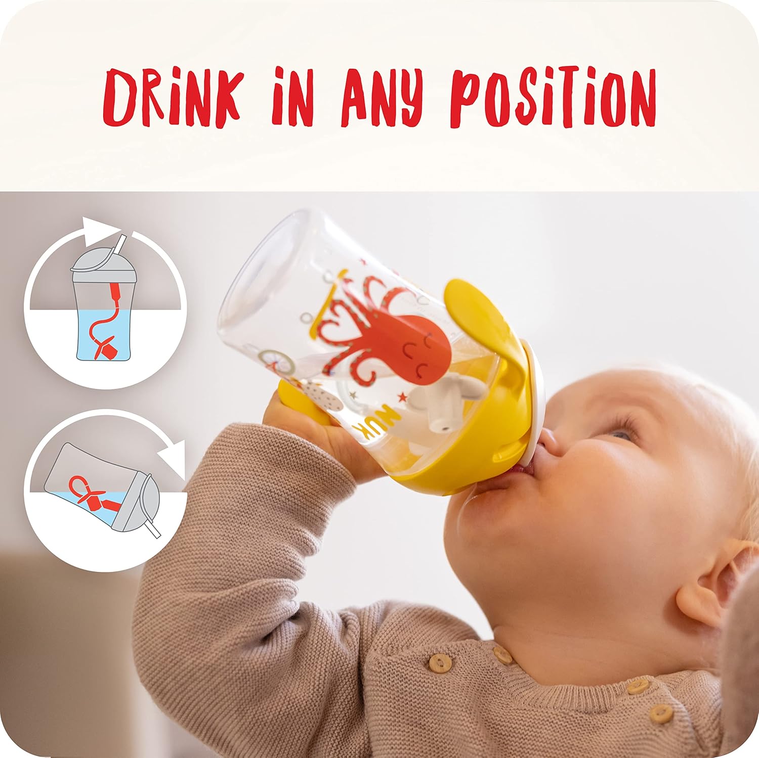 - Motion Cup : idéal comme premier gobelet à paille pour un succès rapide – avec paille souple et poignées ergonomiques
