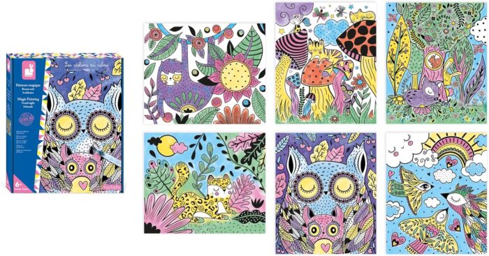 - UNE ACTIVITÉ ORIGINALE POUR ENFANT : Ce coffret créatif propose 6 adorables tableaux d’animaux endormis à peindre. Il suffit de passer le feutre à eau sur les traits noirs épais des illustrations, qui libèrent des couleurs différentes comme par magie.