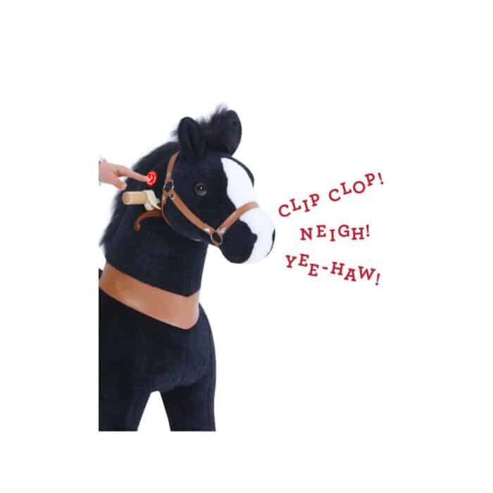 Installez votre enfant sur la selle et lorsque l’enfant fera pression sur les étriers il pourra faire avancer le cheval et le diriger en se maintenant aux poignées prévues au niveau de la tête du cheval. Le cheval Ponycycle promet de longues heures de plaisir à jouer à votre enfant et fonctionne sans piles. Le cheval obéit aux seuls mouvements provoqués par les étriers. Ce jouet stimule l’équilibre et la coordination des enfants.