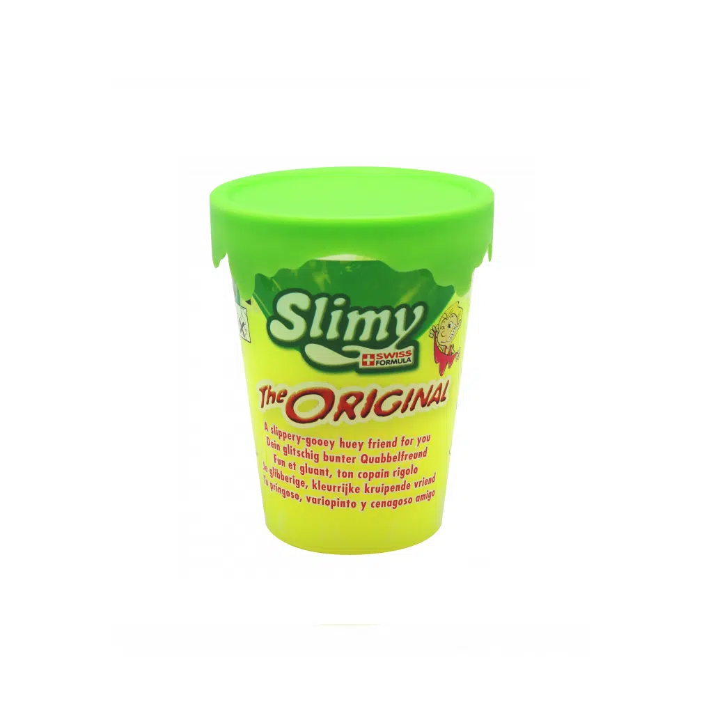 Le slime Slimy Original en pot convient aux enfants de plus de trois ans.